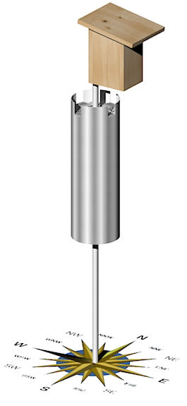 Wind generally blows from the west, but topography, structures and trees may change the predominant direction. Identify the prevailing wind at your site and face the nestbox away from it to avoid exposing the entry to windswept rain.