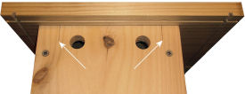 Roofs on front opening boxes are attached to the sides, so we can't simply shorten the sides to create venting. The easiest solution for front opening boxes is to drill one or more 3/4" diameter holes in the sides. Locate these holes as close to the top of the side as possible to reduce the possibility of rain entering the holes. (3/4" diameter is .44 square inches, so it will take six (three per side) to equal the amount of venting in a standard NABS nestbox).
