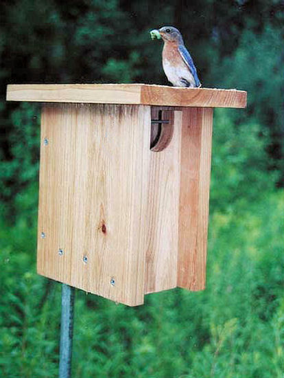 The Gilwood represented one of the most radical changes in bluebird nestbox design since manmade nesting structures were first erected for Eastern Bluebirds in the 1930s. Designed by Steve Gilbertson of Aitkin MN, the Gilwood has since established itself as a favorite with both Bluebirders and the Bluebirds themselves.
