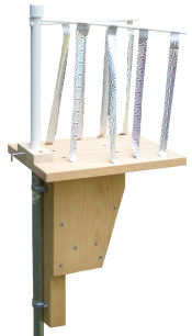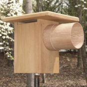 Same principle as Noel guard. Made from a 6" long section of 4" thin wall pvc and a pvc cap. Two entry holes of different diameters can be drilled in the cap for added versatility. Guard is attached to nestbox front with 3/4" wood screws. Designed by Don Hutchings.
