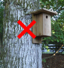Locate your nestbox away from undergrowth and brush. These areas provide cover for predators. A nestbox located near other structures or under overhanging limbs provide predators a path to your nestbox.