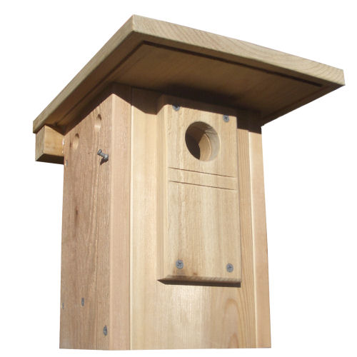 Every nest box, no matter how well conceived and built, is an artificial cavity provided by a human. Unlike natural cavities, nestboxes are extremely visible, making them easy targets for predators looking for a convenient meal. With that in mind, we must accept the responsibility to protect the future occupants of our nestboxes from intrusion by predators. There is no one solution to protect against all predators and unfortunately no solution is totally effective. When at all possible, know which predators you are dealing with and install the appropriate devices accordingly. Any device added to a box after egg laying has begun requires close follow-up observation to be sure both adults accept it.