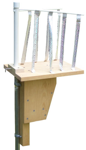 It's not clear why House Sparrows in particular fear the reflective ribbons of the sparrow spooker, but most do, so this device has a fairly good success rate at deterring them. Spookers are easy to make with PVC pipe or dowels and streamers made of mylar, ribbon or strips from a potato chip bag.